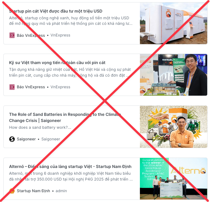 Here are such purposefully misleading PR examples, where the origin of Sand Battery made in Vietnam was not clear: